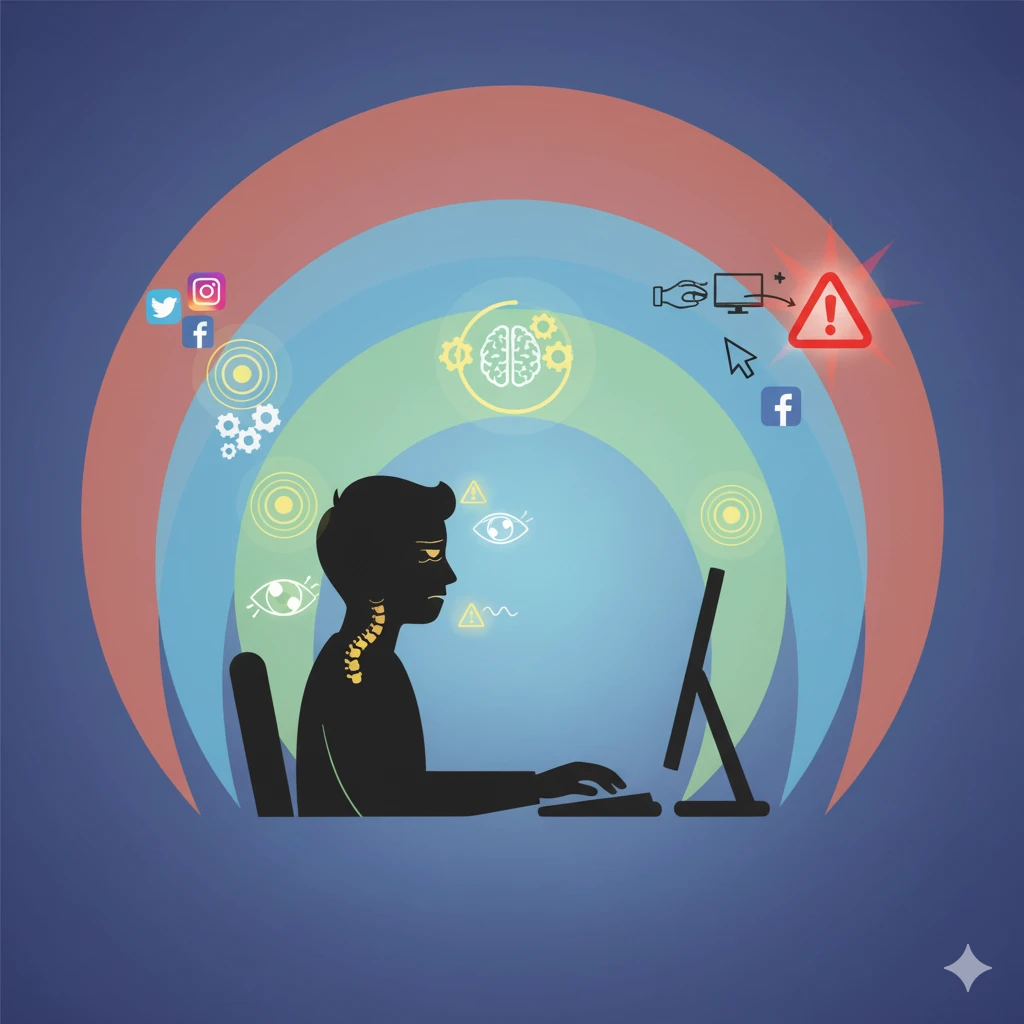 - Body signs: dry eyes, slumped posture, stiff shoulders/neck, etc. Early fatigue (Yellow)