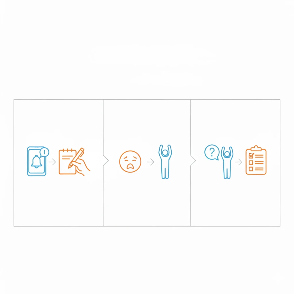 | Checks when you still can’t return | Review the granularity of the restart note, the order of breathing and warm‑up, and whether you noted your feelings. | Split an oversized note; restore any missing steps; put unease into words. |