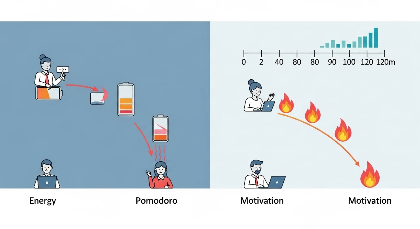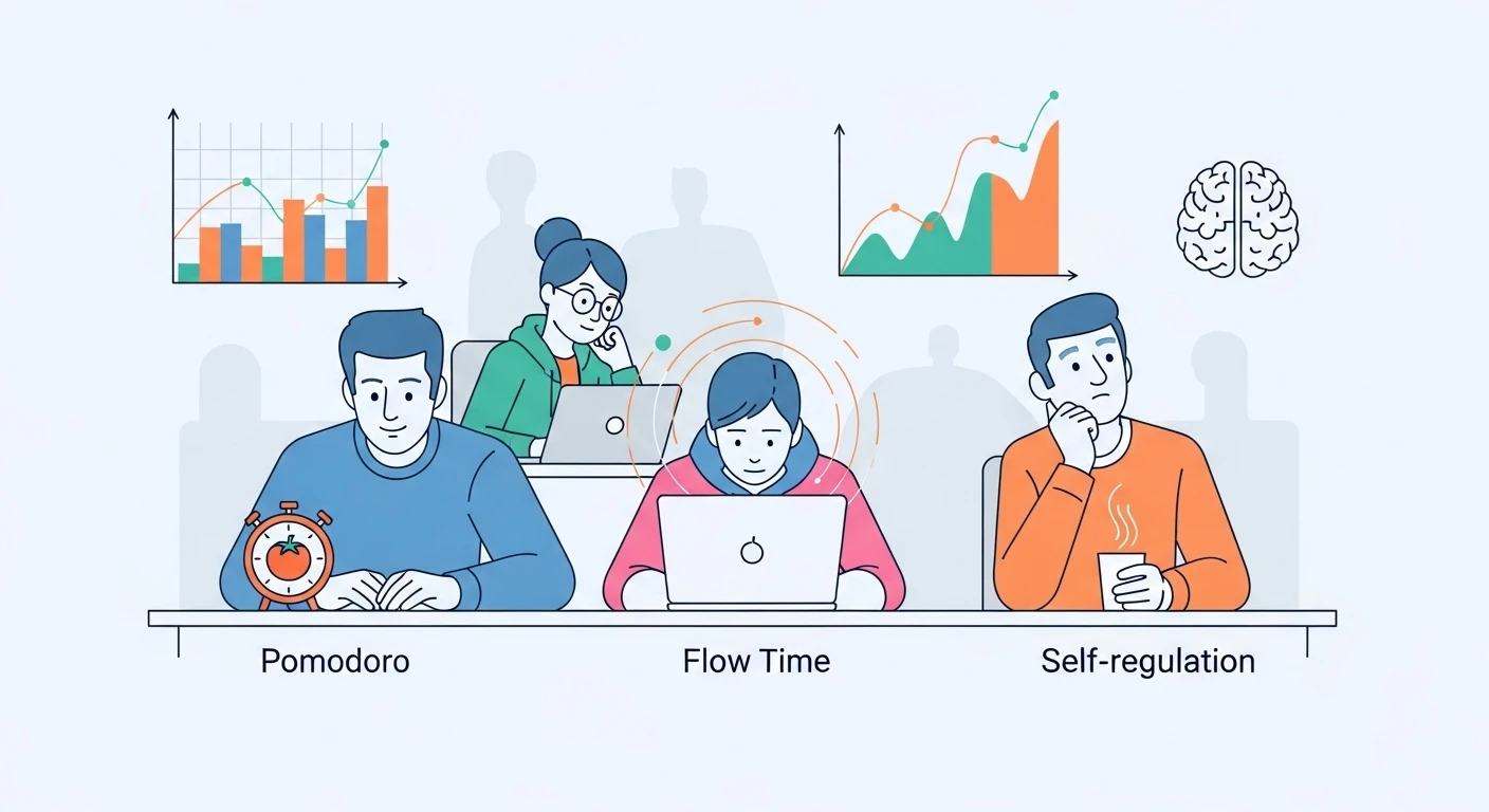However, “no difference in outcomes” does not mean “anything goes.” As noted, how you feel while studying (fatigue trajectory and motivation) does vary by technique. For example, Pomodoro’s frequent boundaries can help you refresh often, but the interruptions can also break flow more easily. Flowtime lets you get lost in the work but risks postponing breaks too long, leading to fatigue buildup. Self‑regulated breaks maximize freedom but come with self‑management challenges—you may under‑rest or, conversely, over‑rest.