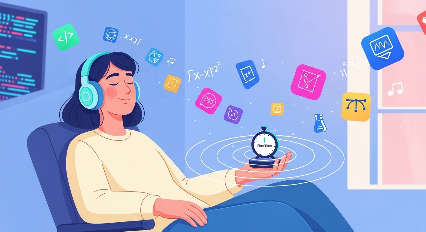 FlowTime's greatest feature is that the break time is automatically adjusted according to your work time. If you work for 25 minutes, you get a 5-minute break; for 50 minutes, you get a 10-minute break. In other words, 20% of your work time is allocated as break time. This system allows you to concentrate for longer periods when you're in the zone, and to take a break as soon as your focus wanes. It achieves truly personalized time management that adapts to the rhythm of your brain. The hyperfocus associated with ADHD can be a double-edged sword, but by taking breaks at the right moments, you can prevent burnout from extreme fatigue and maintain stable productivity.